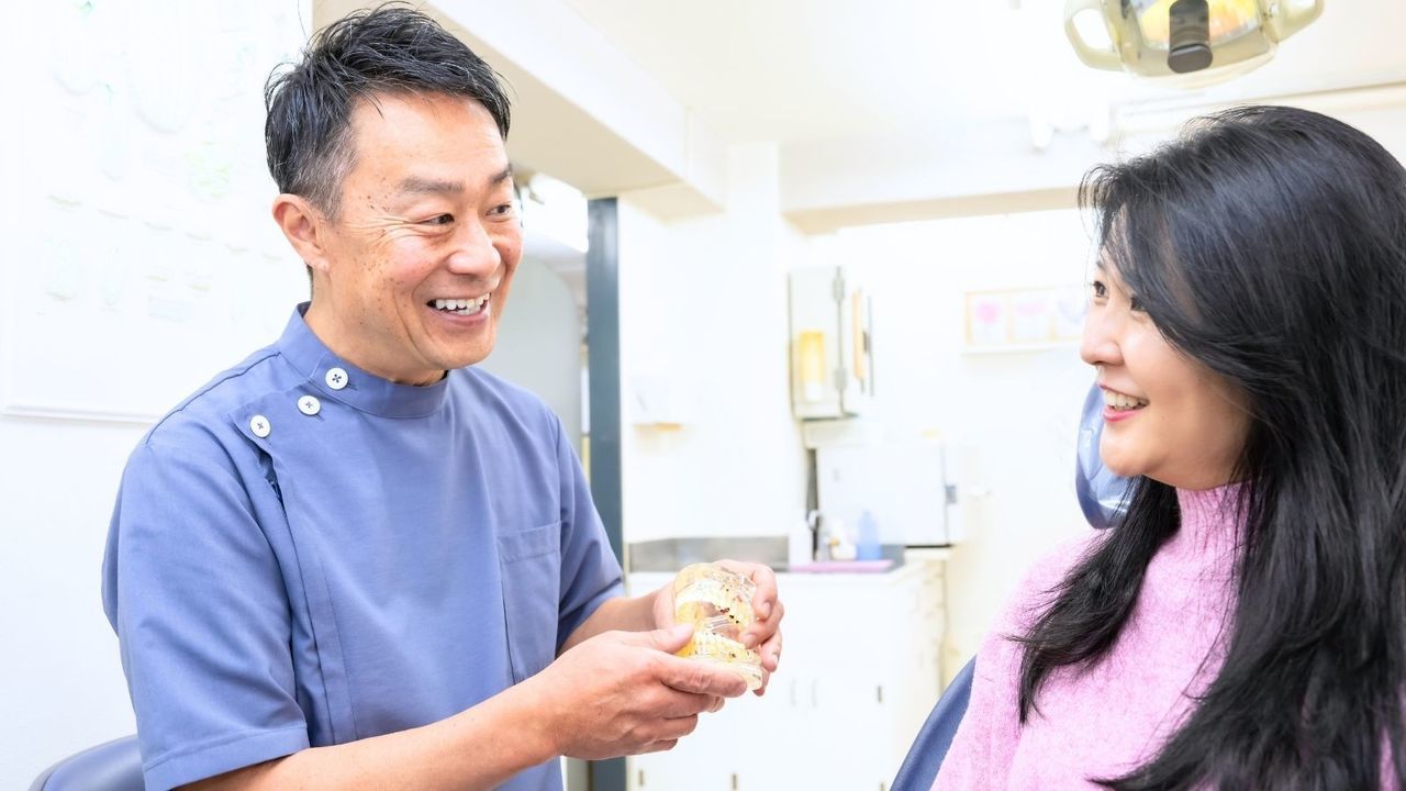さらに、「どこに汚れが残りやすいか」を直接お伝えすることも忘れません。患者さまのお口の中で歯ブラシを一緒に動かしてみたり、あごの模型を使ったりしながら、効果的なブラッシング方法を具体的にご説明します。