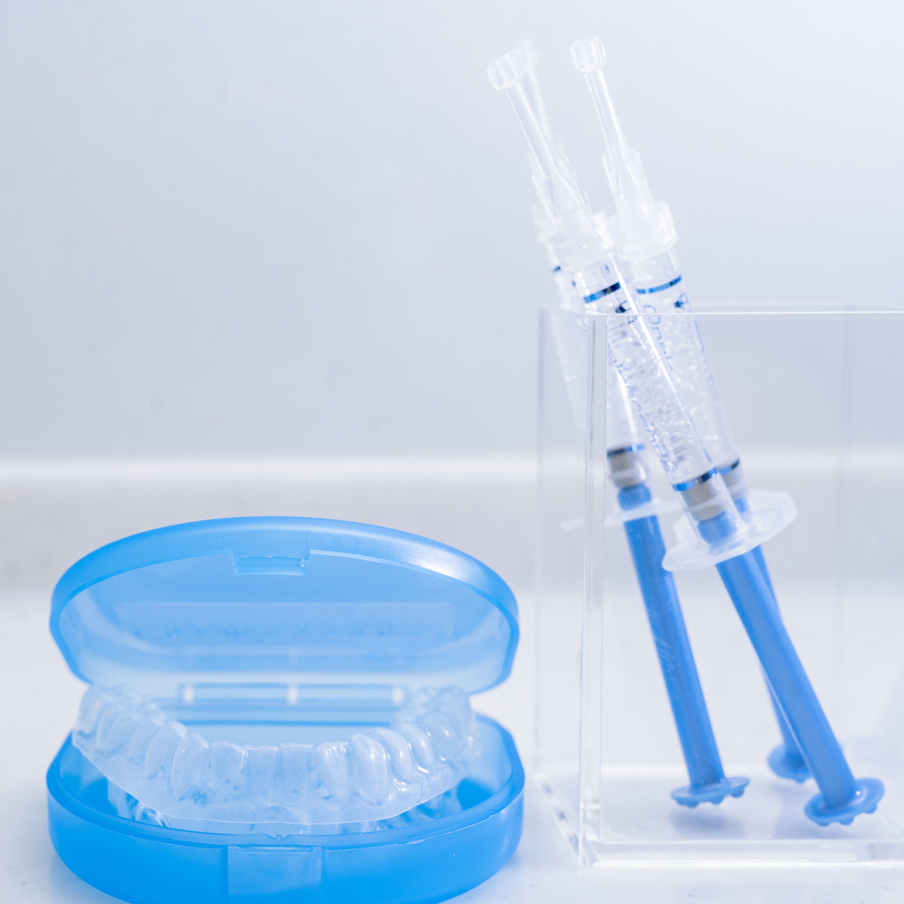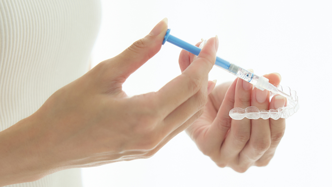 マウスピースが完成したら、ご自宅でホワイトニングを始めていただきます。ホワイトニングジェルをマウスピースに入れ、装着します。